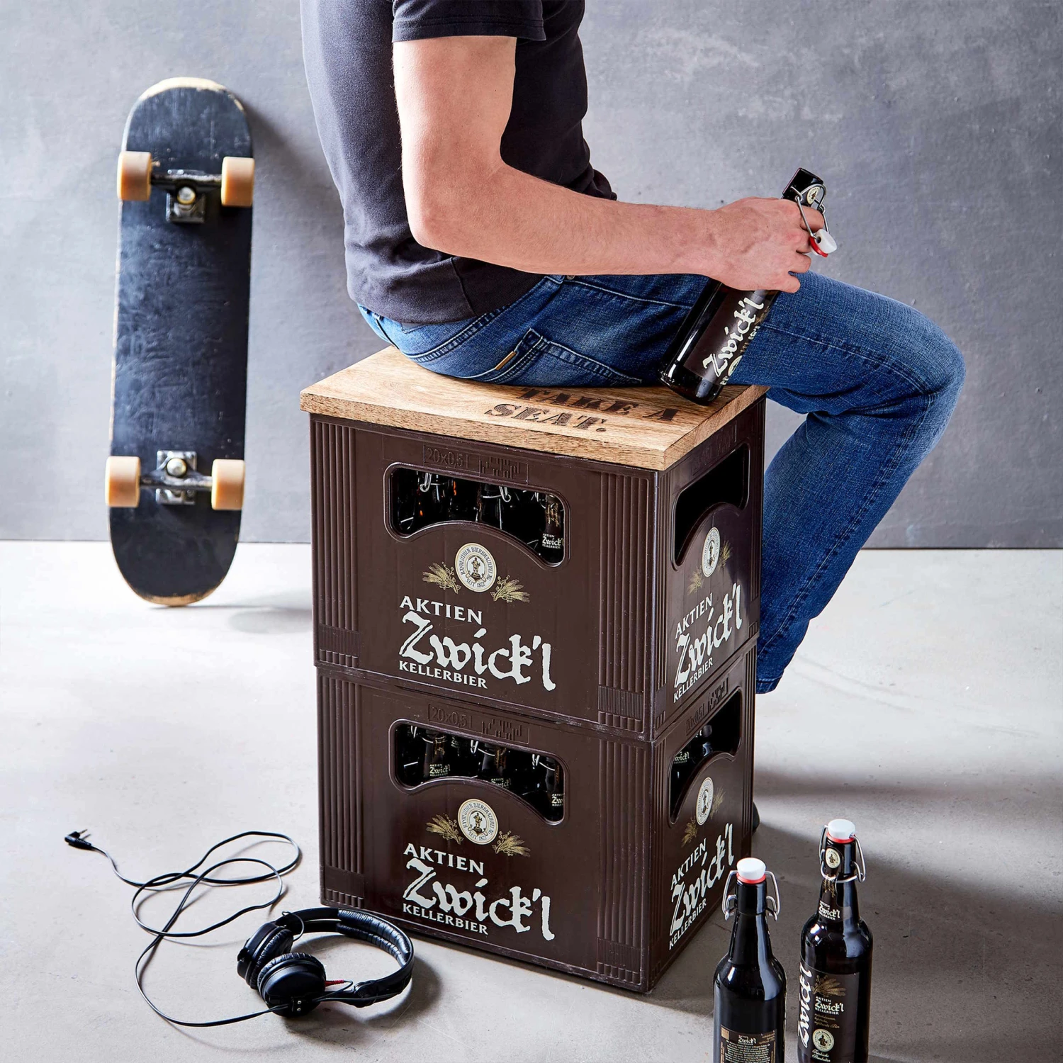 Ihre Freunde kommen auf ein Bier vorbei – und machen es sich direkt auf der Kiste gemütlich mit der Take a Seat Auflage für Bierkästen. Dieses praktische Tool aus Mangoholz passt auf jeden handelsüblichen Bierkasten und sitzt dank angebrachter Stopper einwandfrei und ohne Verrutschen. So entsteht schnell eine zusätzliche Sitzgelegenheit, und das auch dort, wo sonst wenig Platz ist, z.B. in engen Küchen oder auf kleinen Balkons. Nach Gebrauch lässt sich die Bierkasten Auflage platzsparend verstauen, oder sie funktionieren Ihre Bierkiste in einen kleinen Beistelltisch um. Tipp: Ideal auch als Geschenkidee, wenn Sie z. B. zu einer (Garten-)Party eingeladen sind.