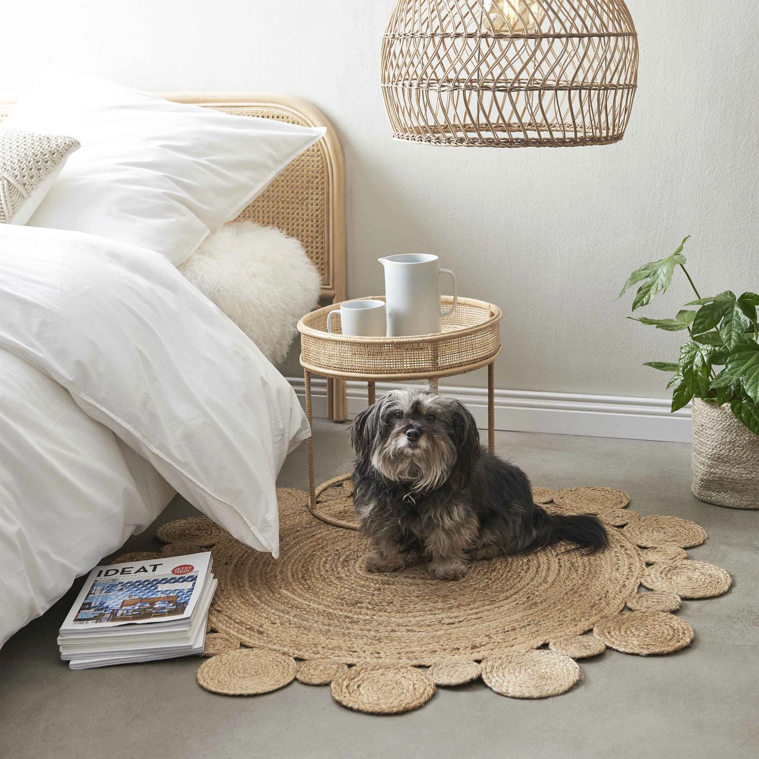 Beim runden All Nature Hanf-Teppich gewebt mit Ornamenten in Natur dreht sich alles um einen bewährten Klassiker, die Nutzpflanze Hanf. Sie liefert das robuste, schmutzabweisende und antistatische Material, das diesen Teppich so strapazierfähig und pflegeleicht macht. Mit diesen Qualitäten eignet er sich auch für Ihren Flur oder Ihr Wohnzimmer, und dort kombinieren Sie ihn beispielsweise mit dem Skandi-Style, dem Boho-Look oder dem französischen Landhausstil. Gefertigt ist der Teppich übrigens in Handarbeit, und so ist jeder einzelne ein Unikat, was Kenner an kleinen Abweichungen in Farbe und Design erkennen. Weitere Varianten erhältlich.