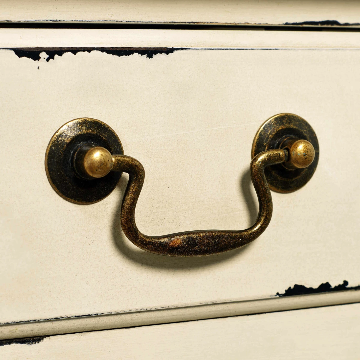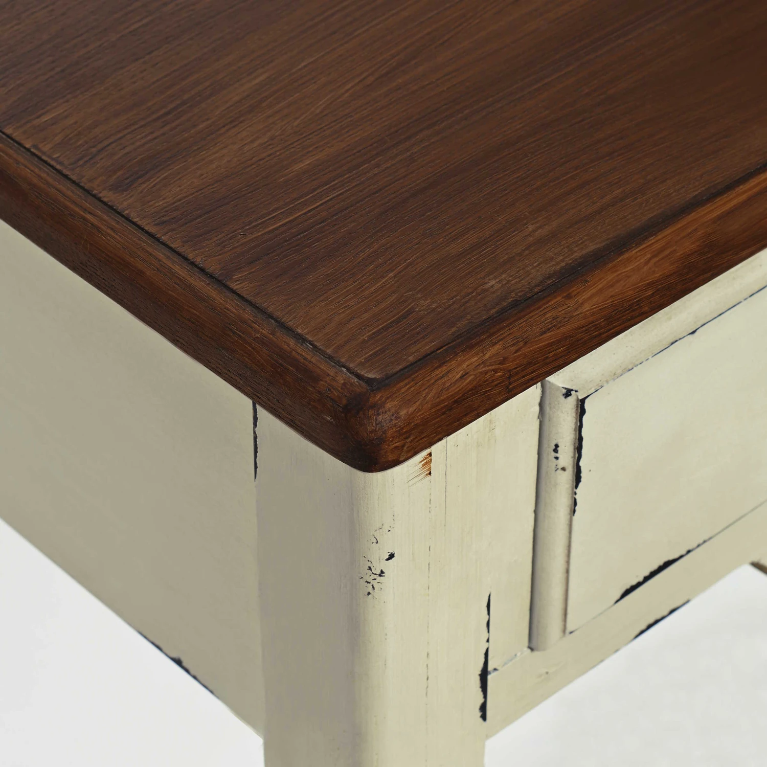Ein verschlafener kleiner Ort irgendwo im Nirgendwo der USA. Ein Häuschen mit Schaukel auf der Veranda und Pick-up vor der Tür, mit Nancy und Bob als Nachbarn und einem Drugstore an der Ecke. Genau aus dieser Welt könnten die Cabott Cove-Möbel stammen. Denn die Serie ist inspiriert vom amerikanischen Landhaus-Stil der 60er Jahre: Antik wirkendes Cremeweiß, hier und da mit brauner Esche kombiniert, messingfarbene Griffe, Kassetteneinsätze in Rillendekor und deutliche Vintage-Effekte – so heimelig kann Wohnen sein. Hier: Konsolentisch mit 3 Schubladen, eschefurnierte Platte.