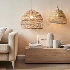 Behagliches Licht, das zum natürlichen Wohntrend passt: Für den dekorativen Corbelle Lampenschirm aus handgeflochtenem Rattan verwenden Sie am besten Leuchtmittel mit Warmlicht (2.700 bis 3.300 Kelvin). So kann der Lampenschirm über dem Esstisch oder im Flur für eine harmonische Lichtstimmung sorgen, die – passend zu seinem Design – an den frühen Morgen oder späten Nachmittag in einer balinesischen Lodge erinnert. Mit Unikat-Charakter, ohne elektrische Installation. In einer weiteren Variante erhältlich.