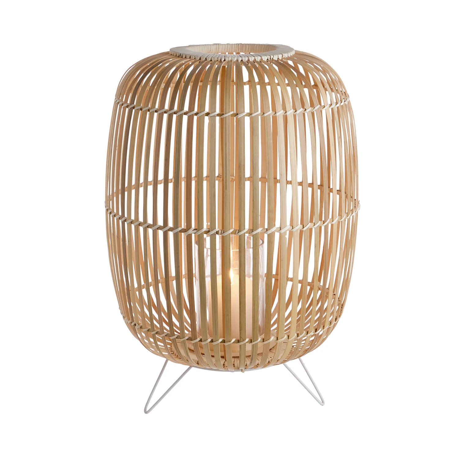 Lange Sommernächte erhellt Ihnen die stimmungsvolle Bamboo Nights Laterne mit Glaseinsatz für Kerzen und Gestell aus Bambus. Und falls Sie irgendwann von der Küche in Richtung Wohnzimmer umziehen, nehmen Sie die Laterne einfach mit.