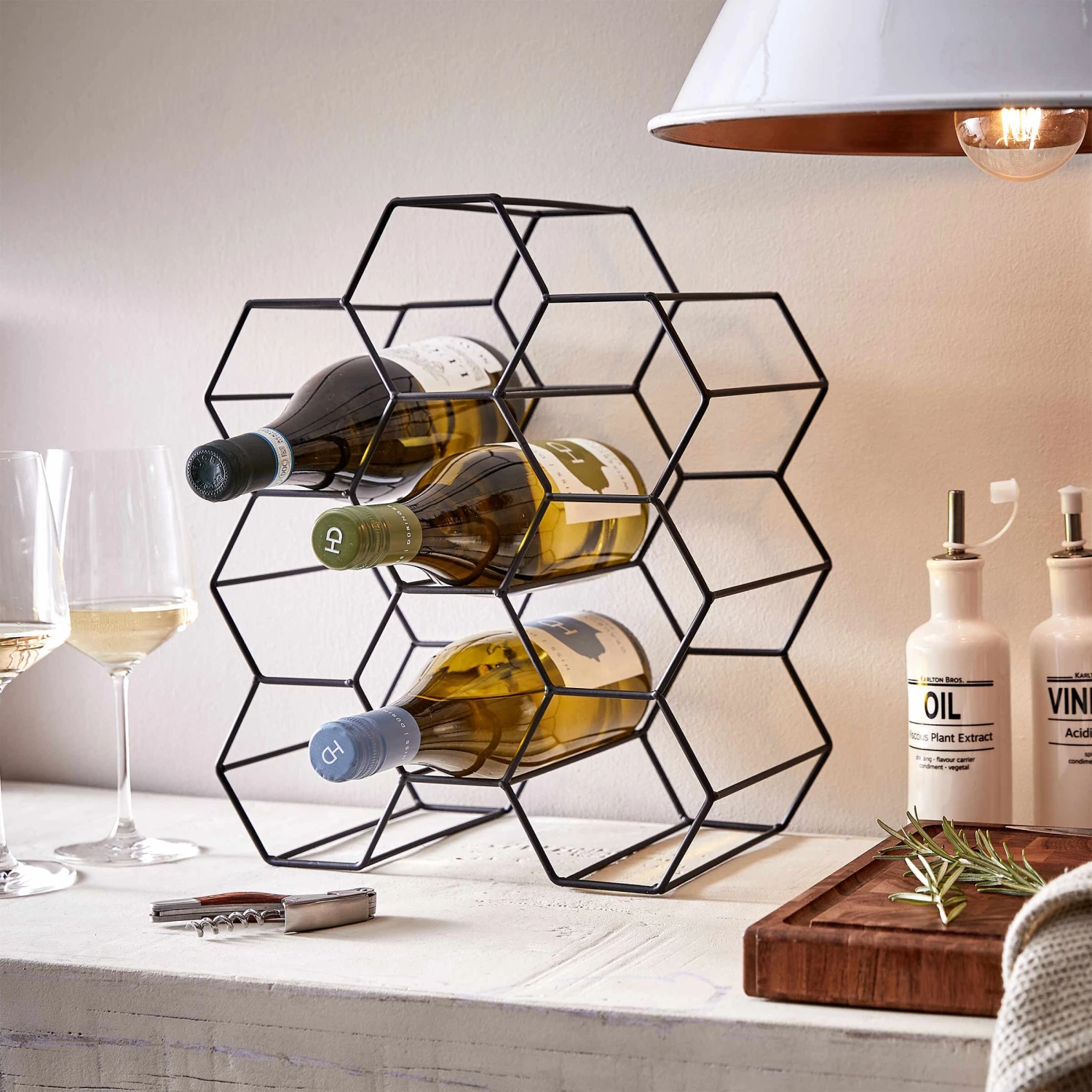 Dekoration. Denn dieses Weinregal aus Eisen hält nicht nur Weinflaschen